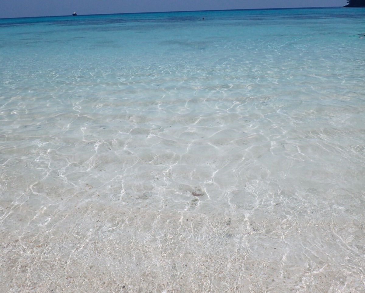 Koh Rok was (of course) full of tourists. But nonetheless the water was crystal clear, the sand like flour and the fish very colourful.