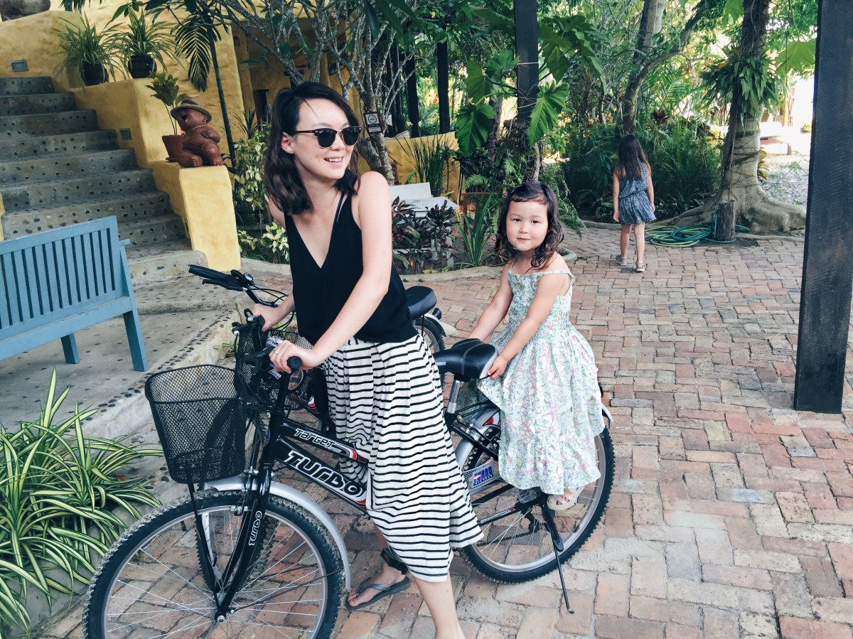 The kids were on the back of the bicycles “Thai style”on a small “seat”, but not to worry the speed of our journey was maybe slower than walking speed…