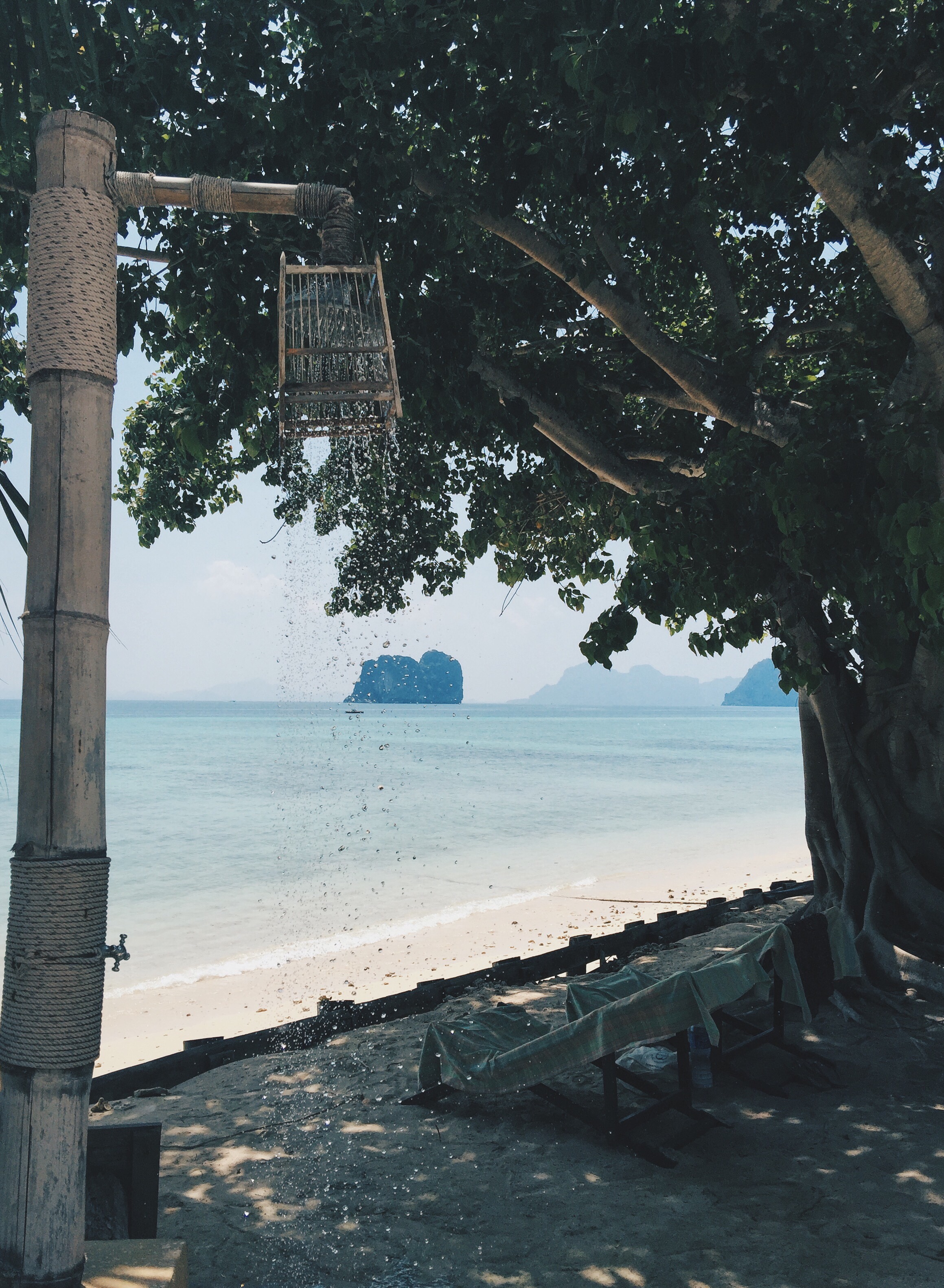 We left Koh Lanta today to go to Koh Ngai – and it truly feels very Robinson Crusoe-ish. Besides a couple of small Resorts here there is just you, the island and the ocean. No real roads, so no cars, no kiosks, no nothing. And with a coral reef just in front of the resort we feel so spoiled. We have to wear swim shoes, when we go for a swim, because of the reef. But that’s a very small “price” to pay for paradise…