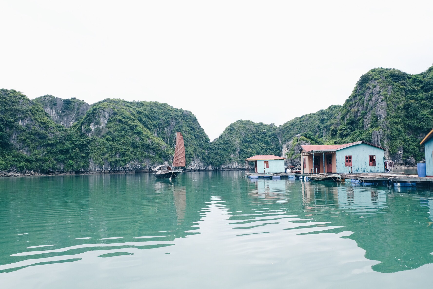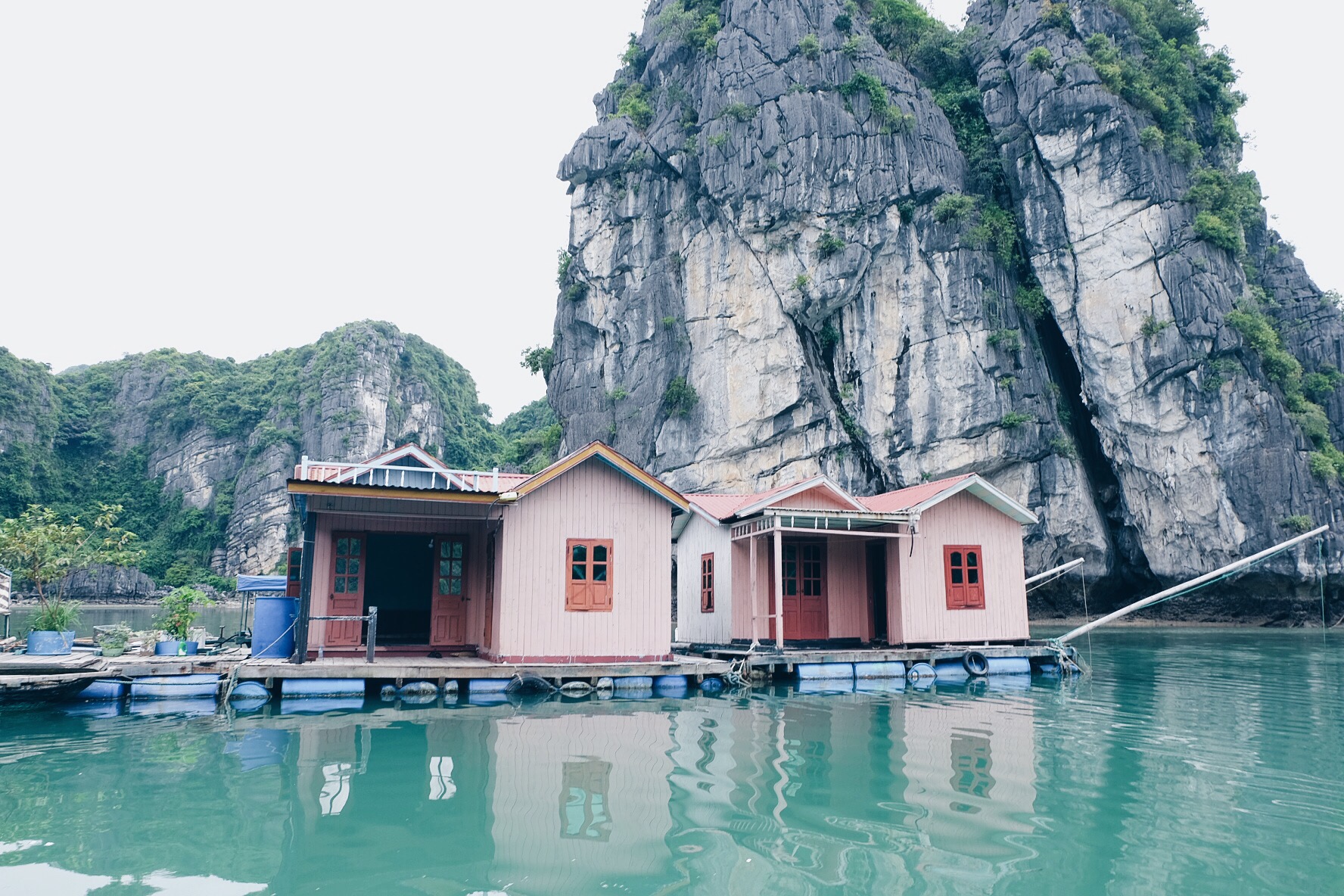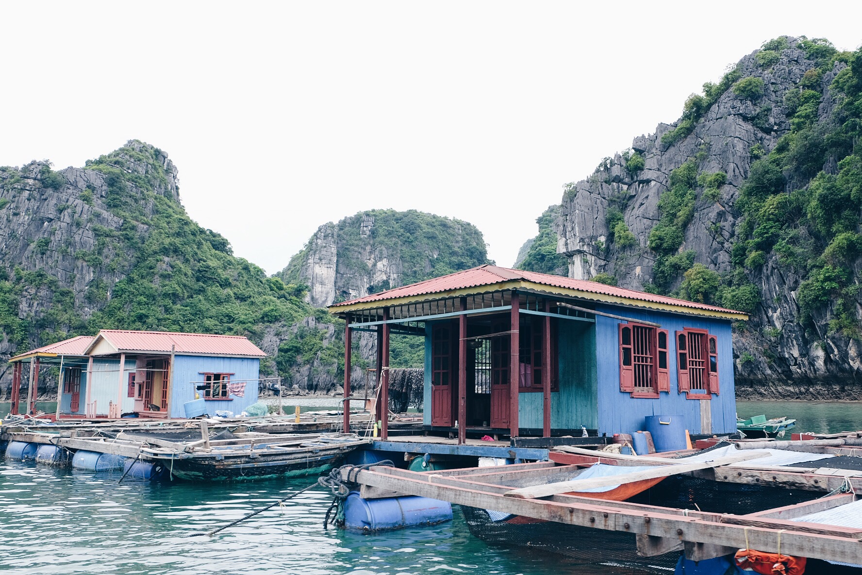 The Fishing Village in Halong Bay is part of the tour with The Dragon legend (3 days 2 nights only) cruise trip. Our guide told us that the floating village today only inhabits 100 people. Not very long ago the number was 500, but a lot of people were moved by the government to ensure, among other things, the children access to school and healthcare. The village is isolated in the middle of the bay and its economy is depending on fishing and harvesting pearls from their oyster farm.
