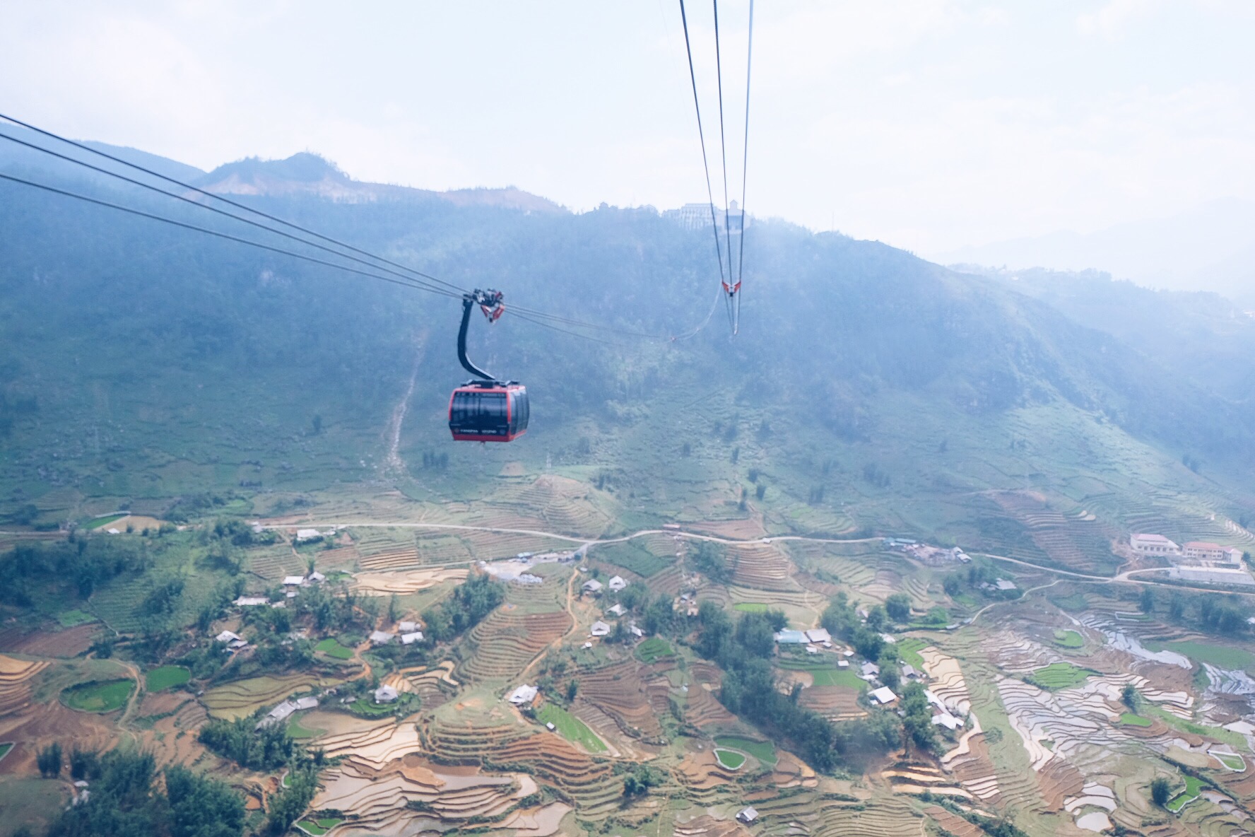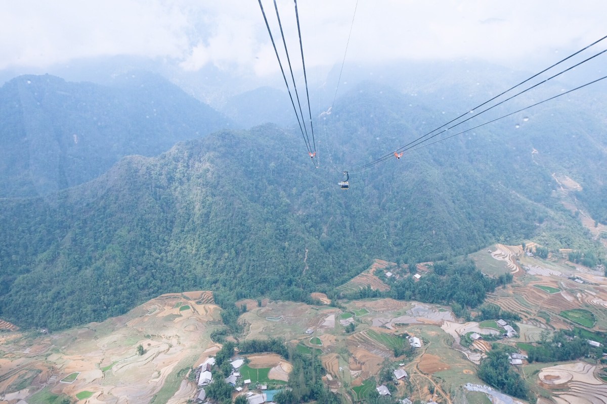 To be honest it was an ambivalent experience. The cable trip itself was very beautiful and a unique experience. However it felt a bit wrong to have all this man-made stuff of cables, buildings, stairs, shops and (soon to come) hotels on this amazing mountain. We were also told by locals that the building of the track had caused many discussions and conflicts in the area. We understand why.