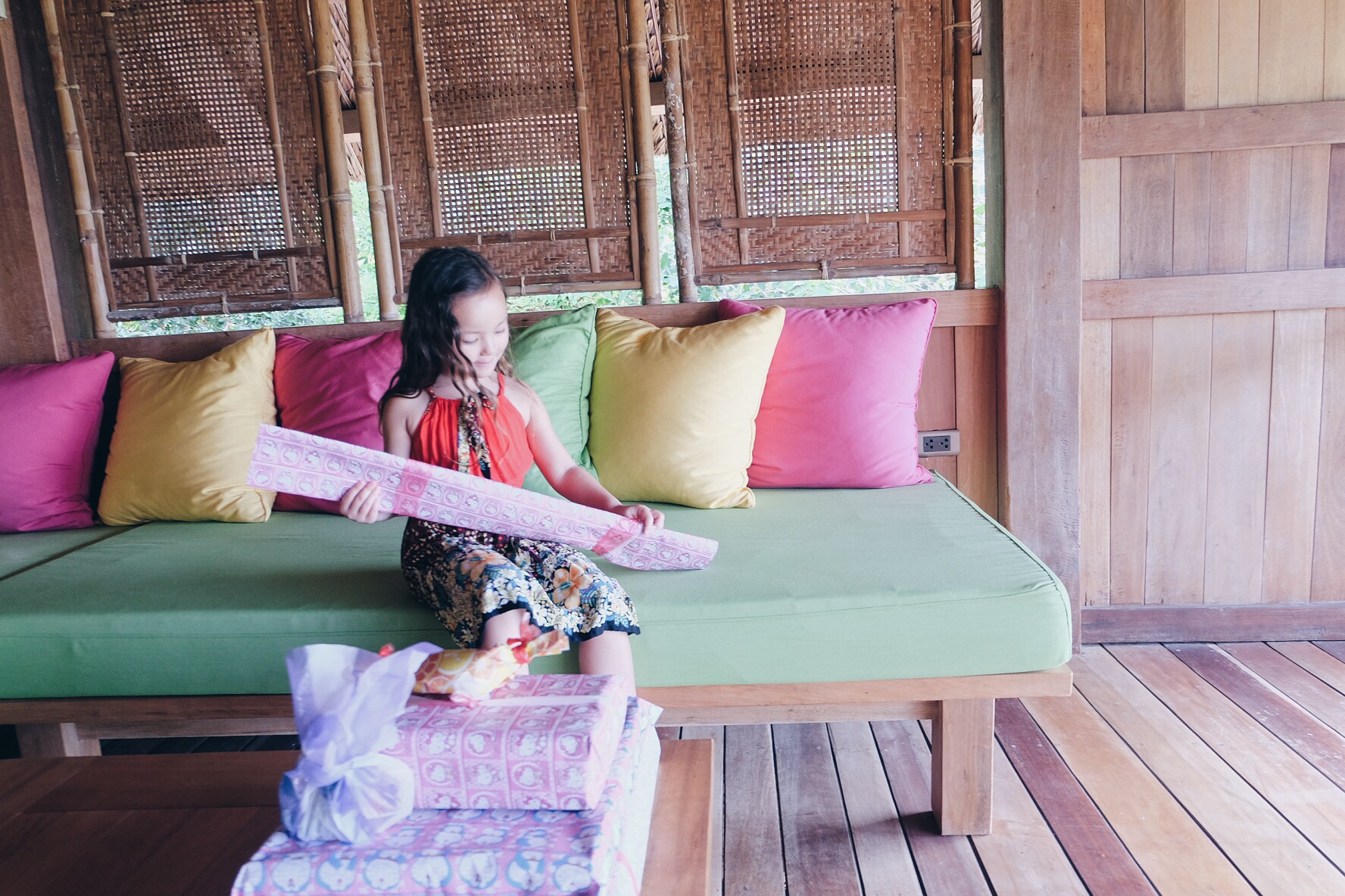 Bjørn and I decided we would do the girls’ joined birthdays at Six Senses, because the coming days will be a bit “hectic” with our travel schedule. We had ordered a cake for the girls in advance and done birthday present shopping in Hoi An.