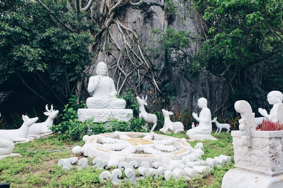 The five ‘mountains’ are named after the five elements; Kim (metal), Thuy (water), Moc (wood), Hoa (fire) and Tho (earth). In the mountains are several Buddhist and Hindu sanctuaries inside caves and tunnels featuring statuary and relief depictions of religious scenes carved out of the marble.