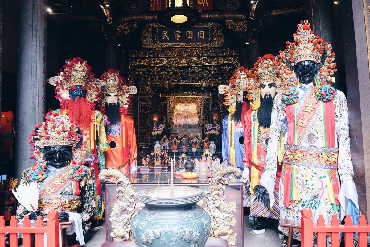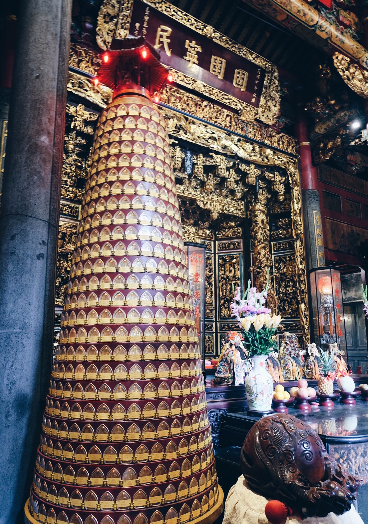 It is a little weird to enter the temple and the first thing you meet are 4 large wooden male statues in golden costumes. However the temple is a hidden oasis in the busy Taipei and once you get use to the statues/gods the temple itself is really very unique and beautiful.