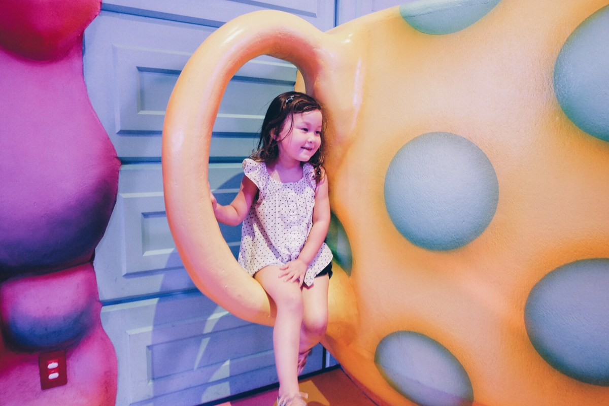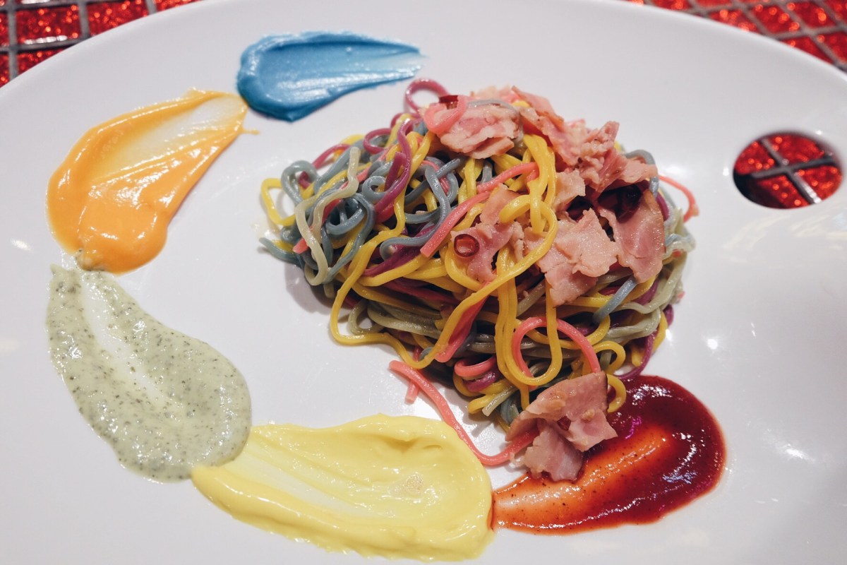 Everything in the restaurant is rainbow colored: the deco, the staff and the food. It it is a bit like Alice in Wonderland in Japanese where everything is a bit crazy, up-side-down and you have your dinner in a tea cup. The waitresses did a small performance before we had our food and the girls were totally hypnotized. Neither of us ever experienced anything like this before. A very recommended experience when in Tokyo (with or without children).
