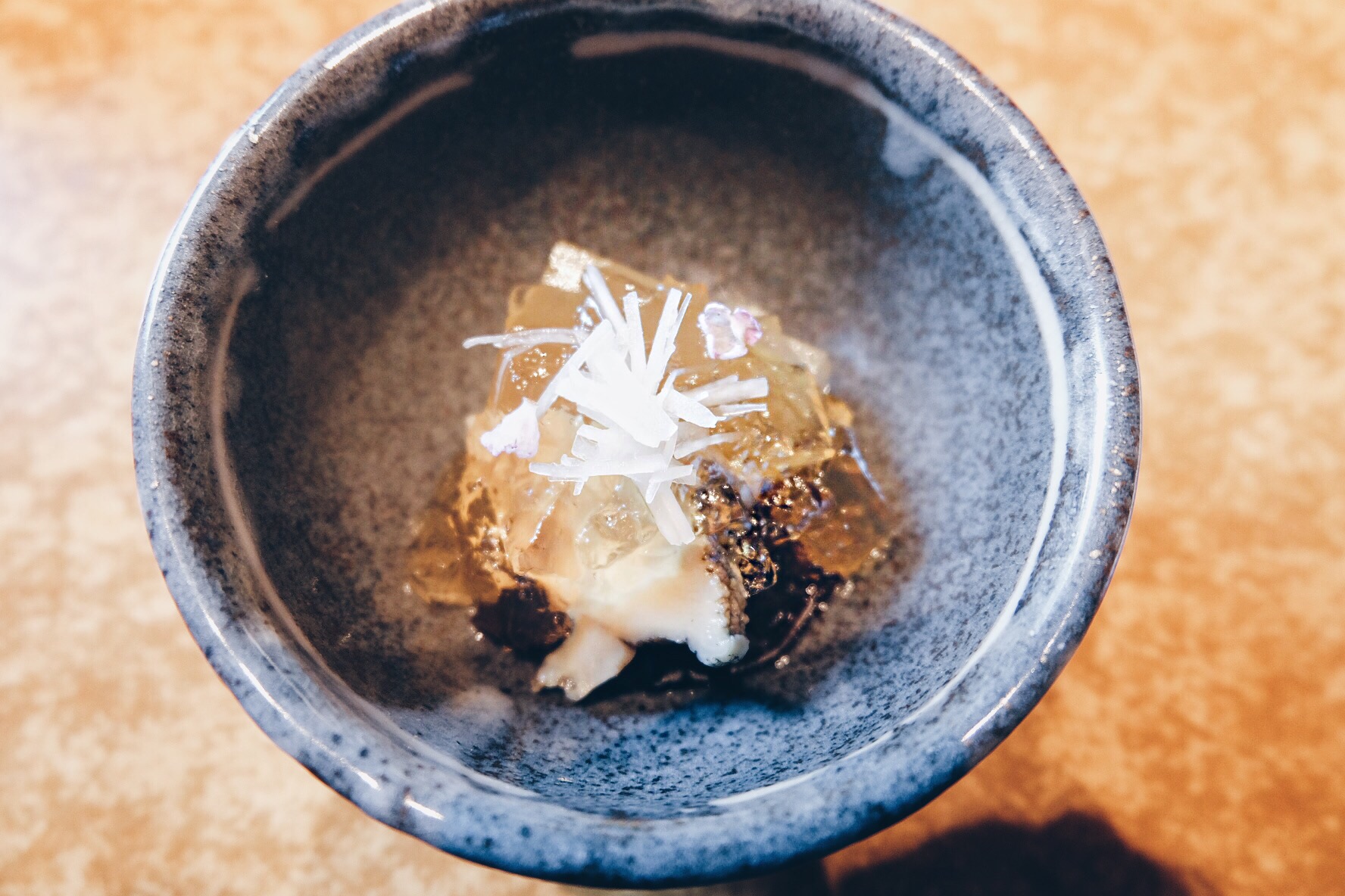 As all the best places in Tokyo are hidden, so is this restaurant. Only a very small sign on the door at ground level leads the way. The restaurant is on the 5th floor and a reservation in advance is needed.