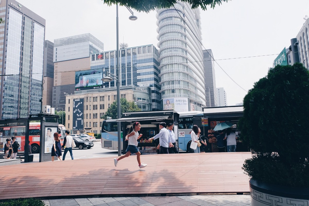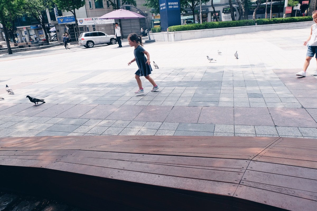We spend some time here today shopping a little of the famous K-beauty products and having lunch. The girls were chasing doves and playing in a smaller square further down towards the city hall.