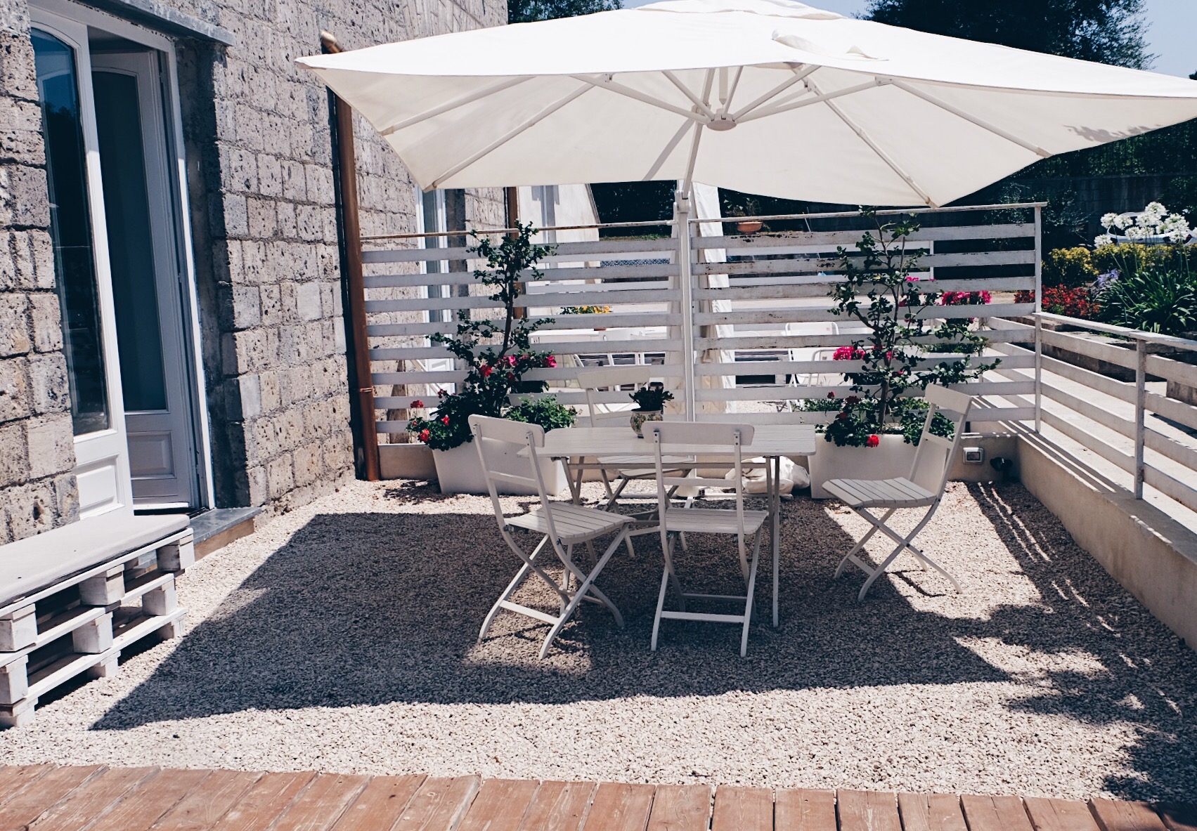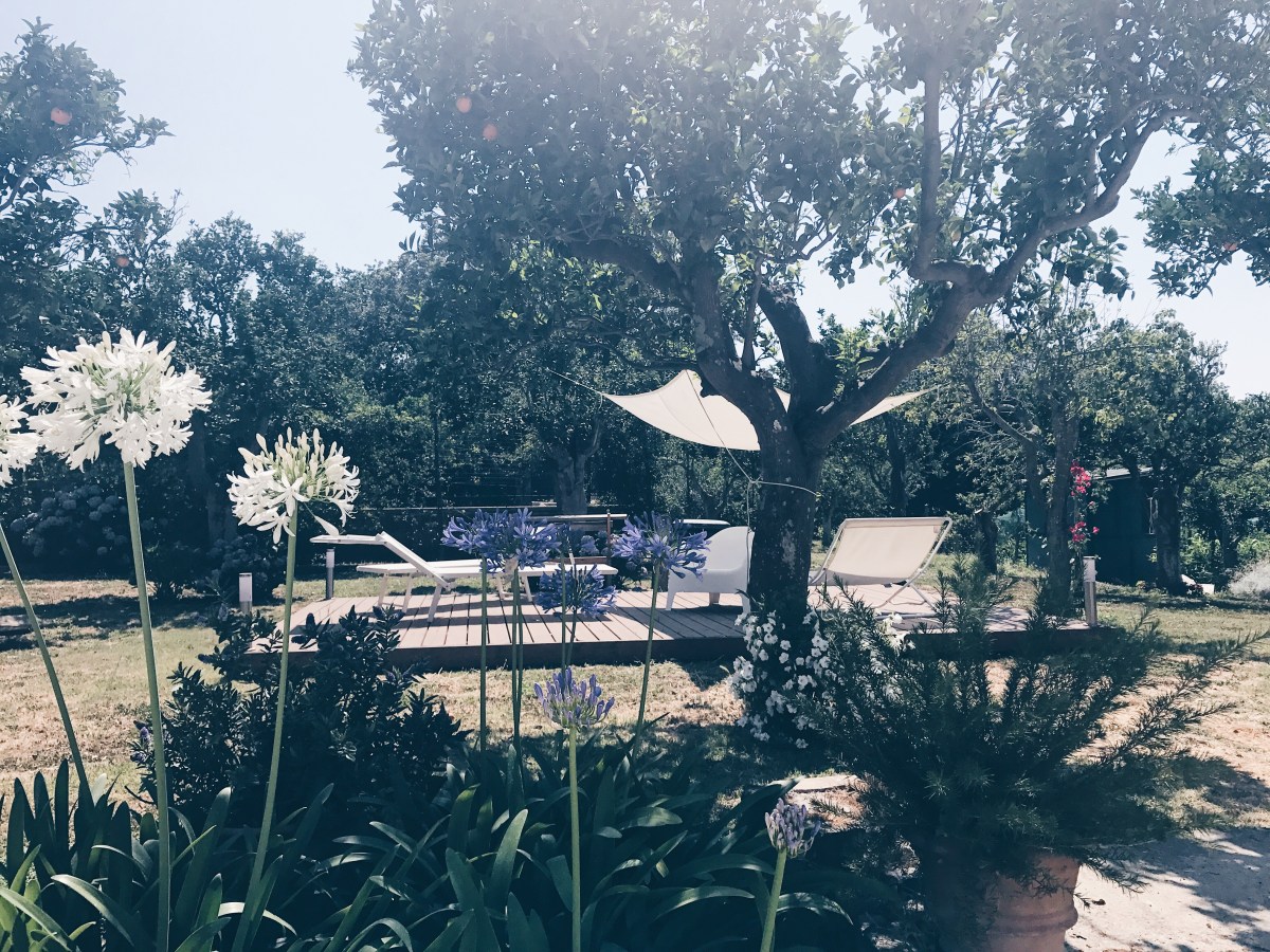 The apartment is in a renovated house with 4 apartments. The owners a very nice and the place is peaceful and have a huge garden with fruit trees (lemons and oranges), vegetables, chickens, a horse and a small pool. We love it here. The girls are so excited about the pool – which we (so far) have been the only ones using) – and in front of our apartment we have a large sundeck where we eat out every morning and evening. The pear tree is booming with pears and both the girls and the house (fed by the girls) are taking advantage of this.
