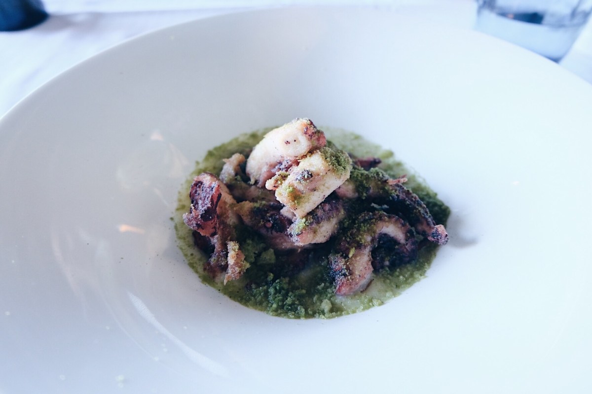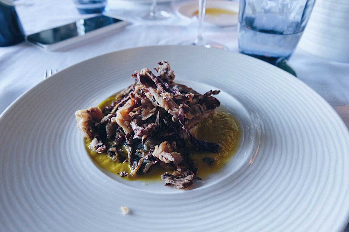 The food was nice, especially our starter, which was calamari. Then we had risotto, fish and ricotta/pistachio dessert. The prices are very expensive, but the full experience itself makes up for that. The service was good and the kids could have pasta and tomato sauce and a cola for more or less “normal” price level of a good restaurant.
