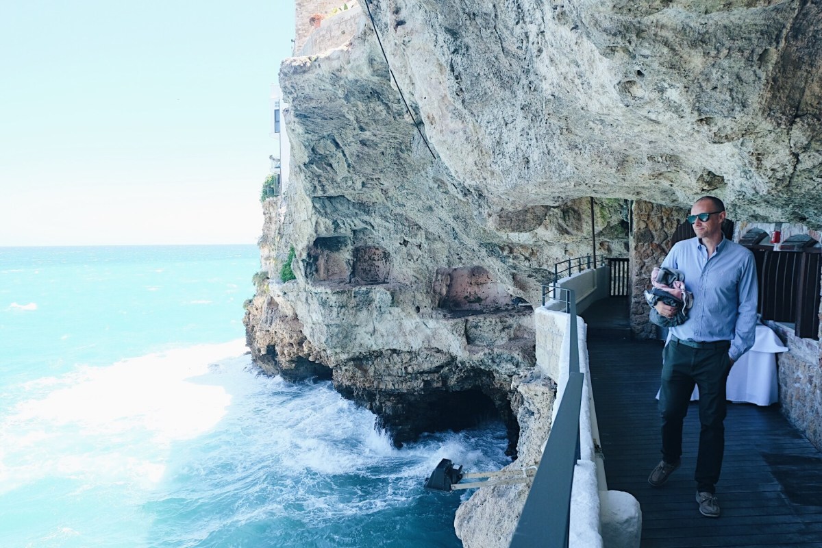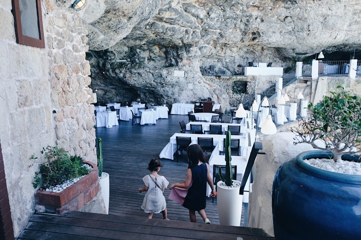 There’s no debating that the location is both unique and amazing. The restaurant has been carved out of the cliff’s limestone centuries ago by the sea and has hosted elegant dinners at the request of Italian nobility since the 18th century. Today the natural sea cave, which is the largest of all the sea caves under the town of Polignano a Mare, serves as a summer restaurant (it’s only open from May until October).