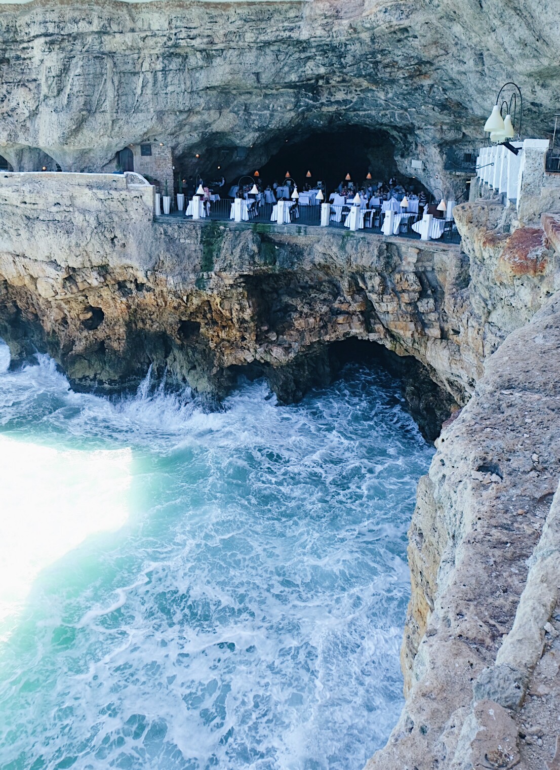 There’s no debating that the location is both unique and amazing. The restaurant has been carved out of the cliff’s limestone centuries ago by the sea and has hosted elegant dinners at the request of Italian nobility since the 18th century. Today the natural sea cave, which is the largest of all the sea caves under the town of Polignano a Mare, serves as a summer restaurant (it’s only open from May until October).
