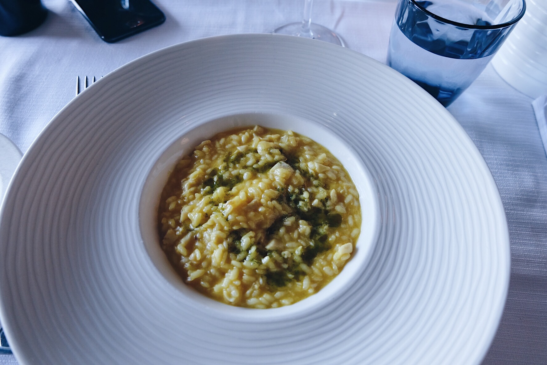The food was nice, especially our starter, which was calamari. Then we had risotto, fish and ricotta/pistachio dessert. The prices are very expensive, but the full experience itself makes up for that. The service was good and the kids could have pasta and tomato sauce and a cola for more or less “normal” price level of a good restaurant.