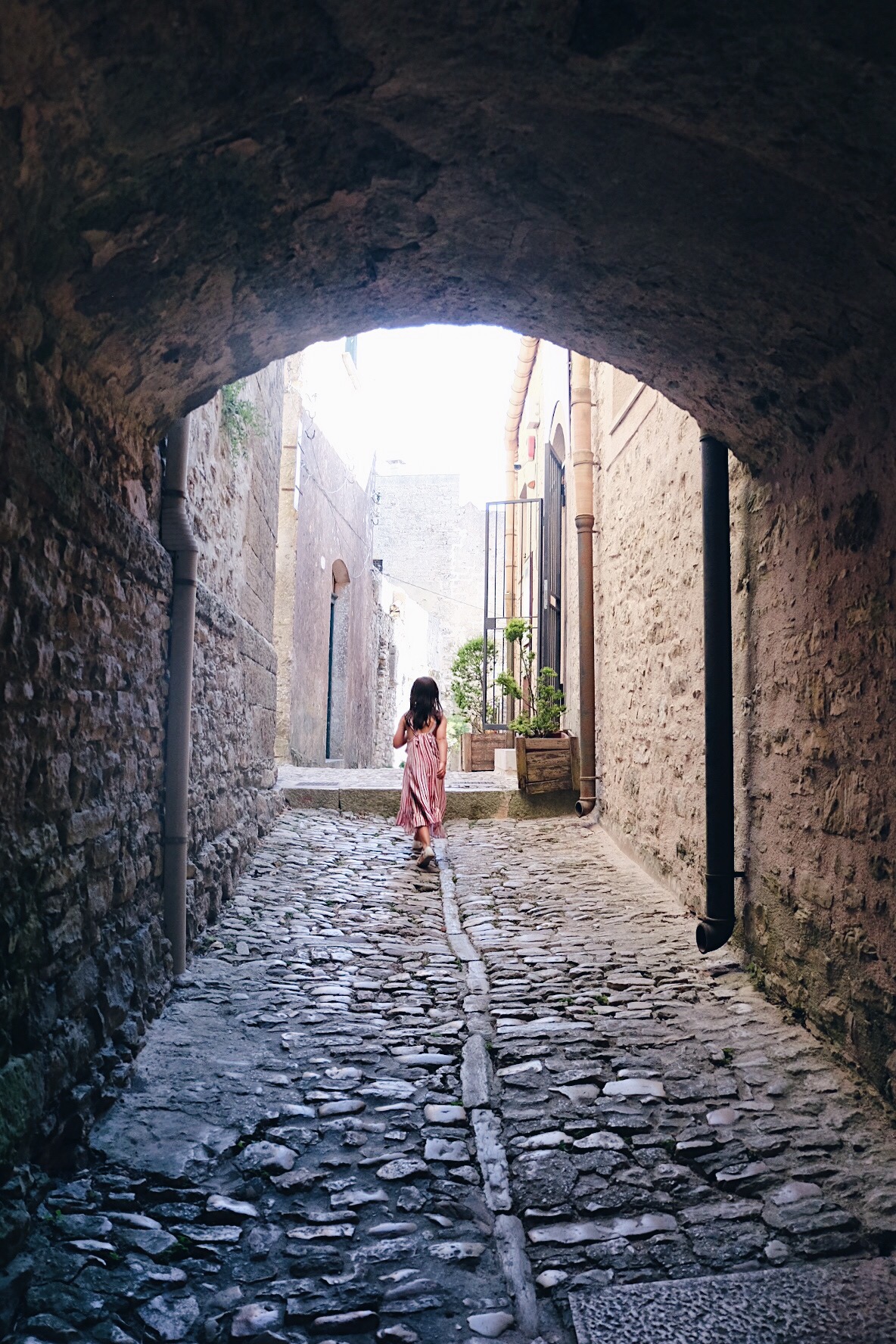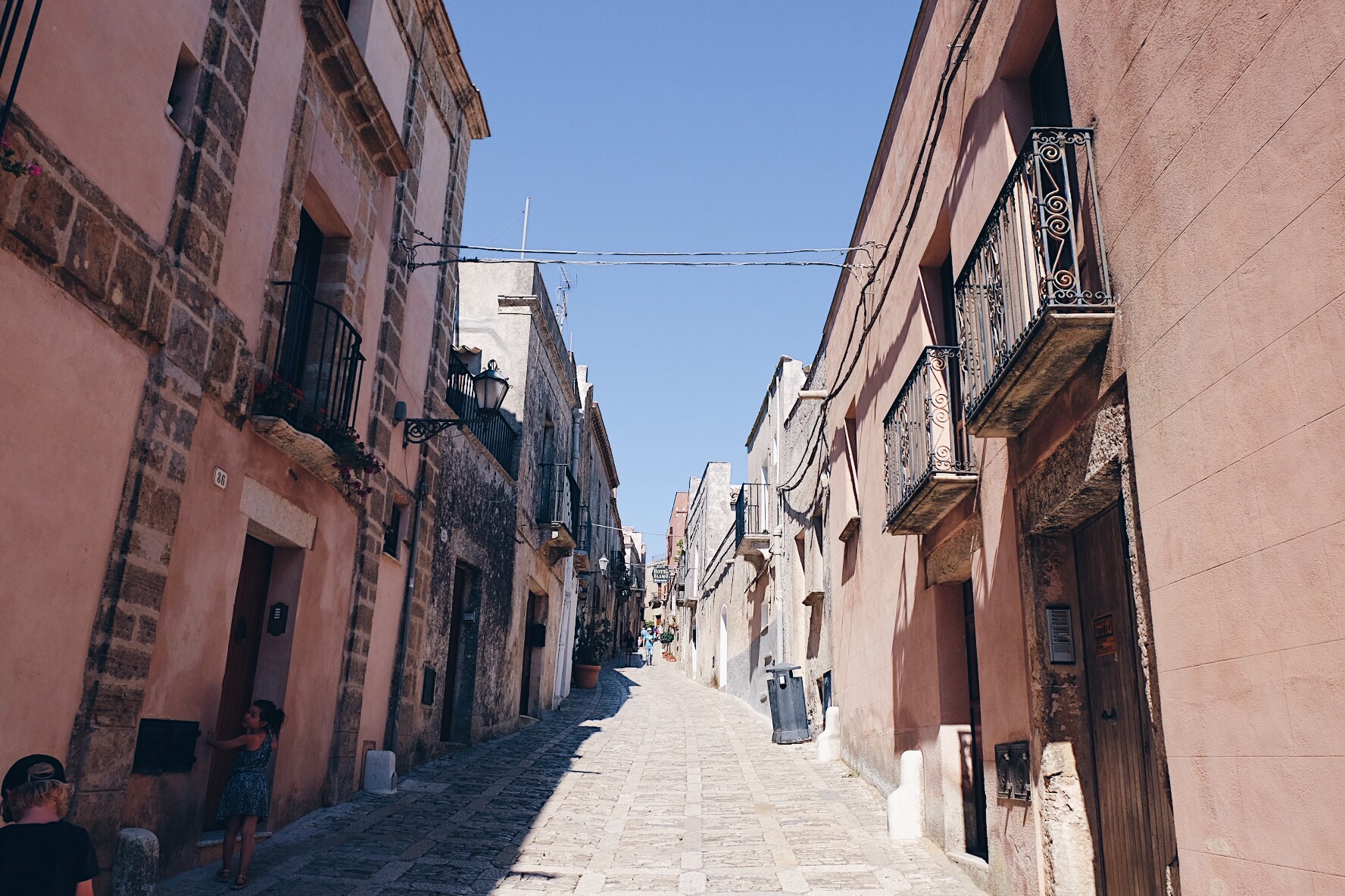Erice is an unforgettable medieval hilltop town in Sicily, close to the port city of Trapani on the island’s western coast. The historic town is surrounded by defensive town walls, crowned by a castle, and dominates the surrounding area from its mountainous height of approximately 800 metres above sea level. To get here you can drive (via very steep narrow road) or you can take a picturesque trip in a cable car . We chose the latter solution. The cable cars run from the outskirts of Trapani and a round trip ticket is 9 euros for adults and 4 euros for children (3-16 years old).