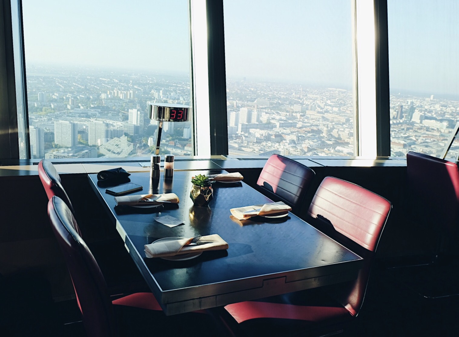 An urban legend has it, the tower’s height was a deliberate decision taken by Walter Ulbricht, Leader of the SED, so that every child would be able to remember it, just like the days of the year; 365 (meters). After a renovation of the last bit of the tower, the summit today actually 368m. It was originally built by East German architects Fritz Dieter, Günter Franke and Werner Ahrendt in the 1960’ties. The interior is from the same period, so the restaurant has a very significant cool 60’ties vibe.