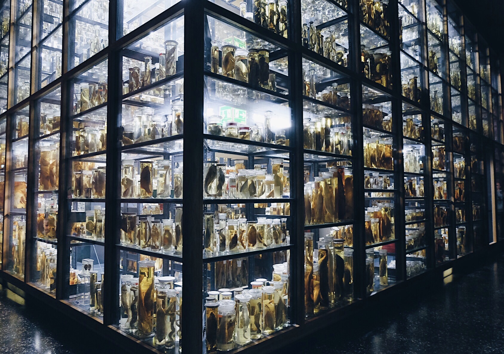 There are a lot to explore and be sure you don’t miss the other exhibition halls which each focus on a different theme. Particularly rewarding are the so-called ‘wet collections’. These are housed in the East Wing. A total of 276,000 glass jars filled with 81,880 litres of alcohol line 12.6 km of shelves in this dramatic space. Fish, spiders, crabs, amphibians and mammals are conserved here. We spend a lot of time gazing at the fascinating and curious objects behind the glass.