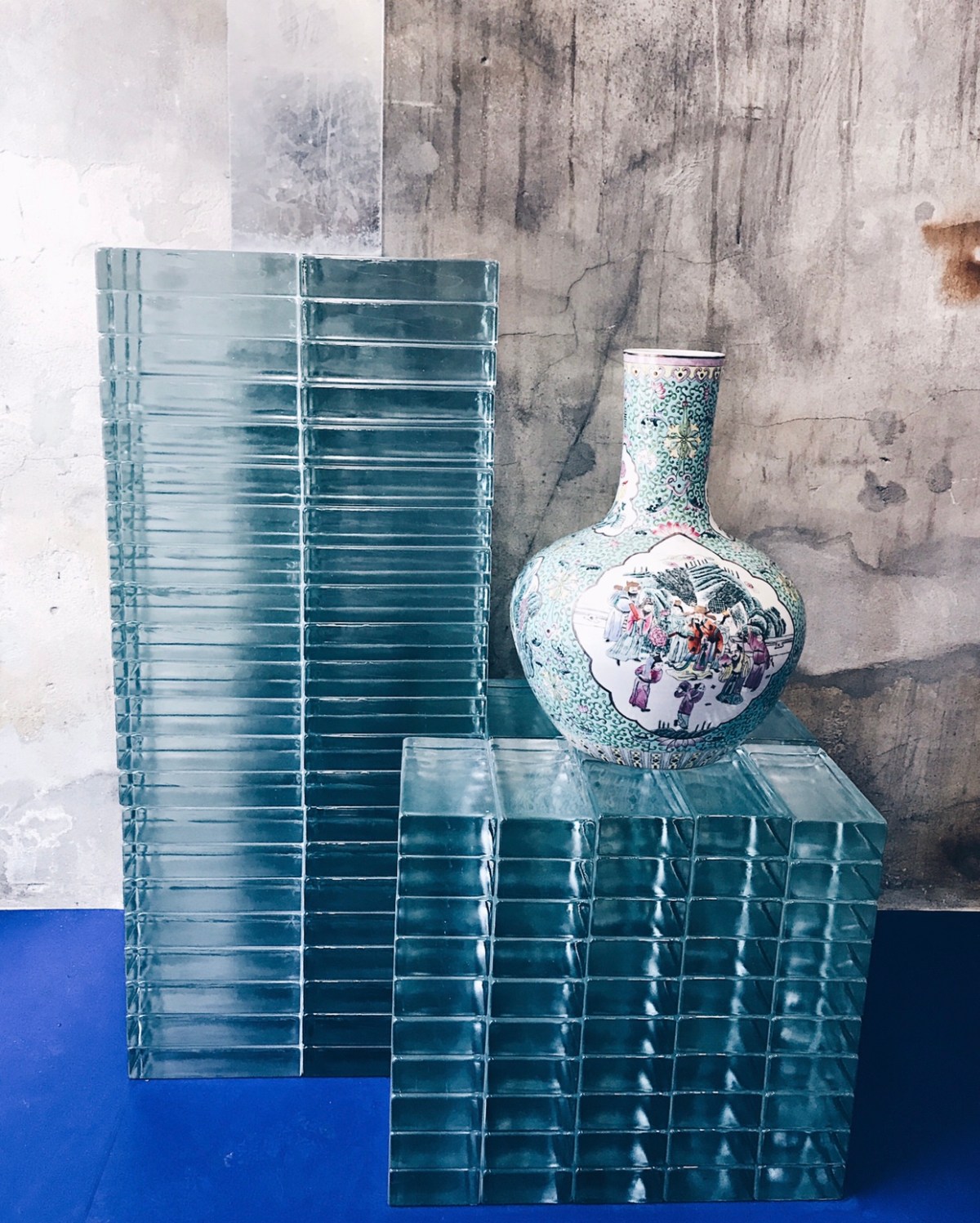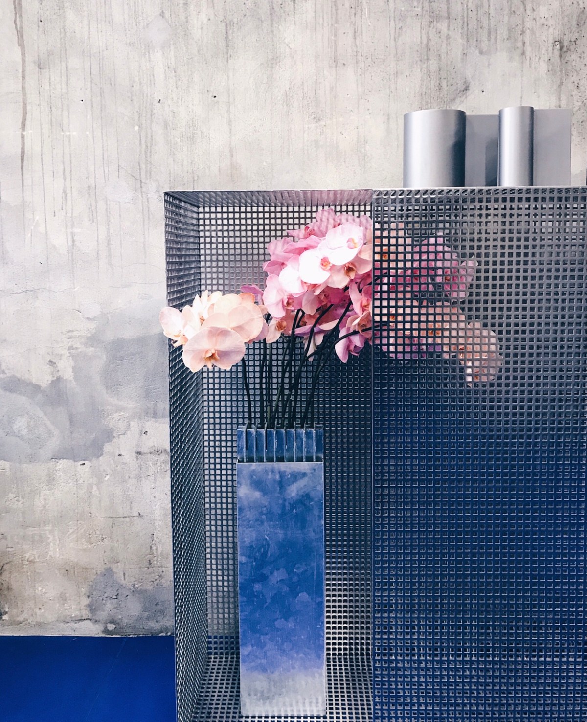 The unique collaboration has showed very succesful and displays all the flora in the store on custom made podiums. The podiums are all made in either geometric shapes, cold materials or actual stones – as a sharp contrast to the beautiful flowers and plants available to buy at very fair prices. Somehow the raw setting and the cold materials helps elevate to flowers and colours. It’s hard to explain, the pictures show it better.