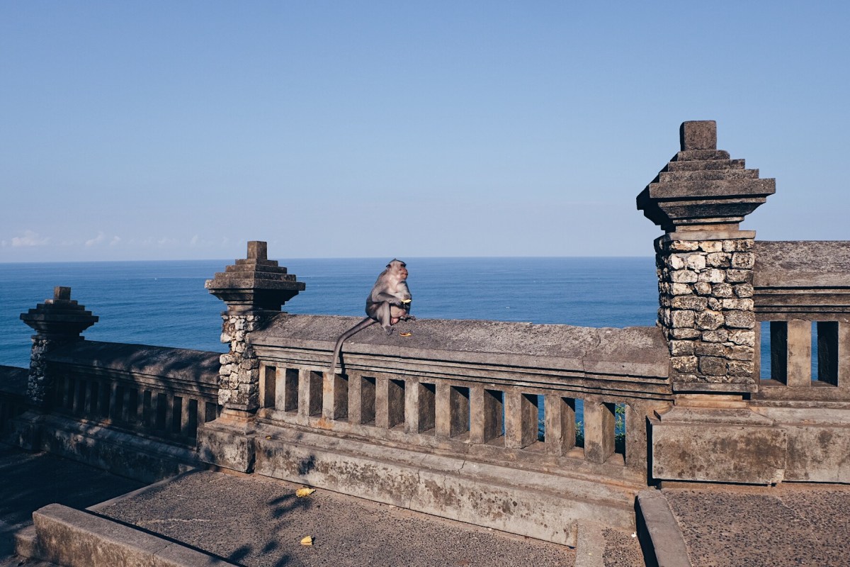 Unlike some other tourist destinations in Bali, Uluwatu Temple area has limited amounts of hassling vendors. Visitors must wear a sarong and a sash, as well as appropriate clothes common for temple visits. Do take it serious when the locals warn you about the monkeys. The moneys are holy and there they are running wild and really try to steal anything away from you they can get their hands on, that goes for sunglasses, mobile phones, cameras and more. They can get aggressive so stay clear of them.