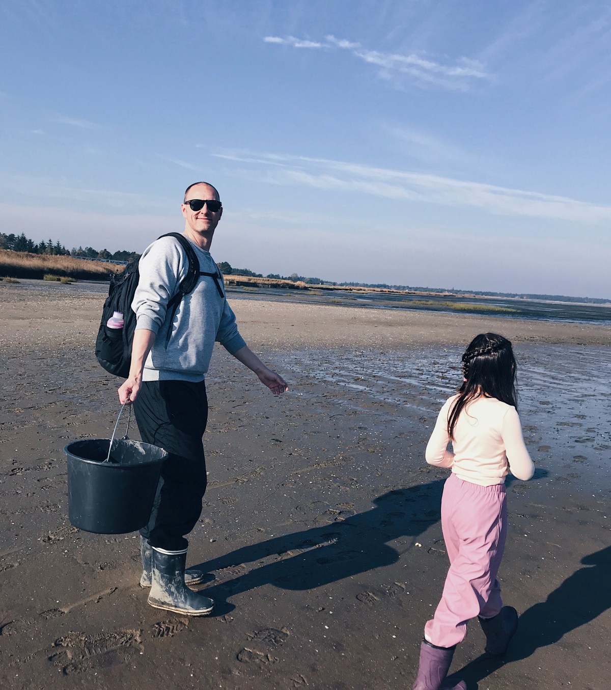 For the trip rubber boots, rain pants, a bucket and an oyster knife is recommended. If you want, you can also bring a shovel, then you can dig after those delicious razor clams that hid deep in the mud.