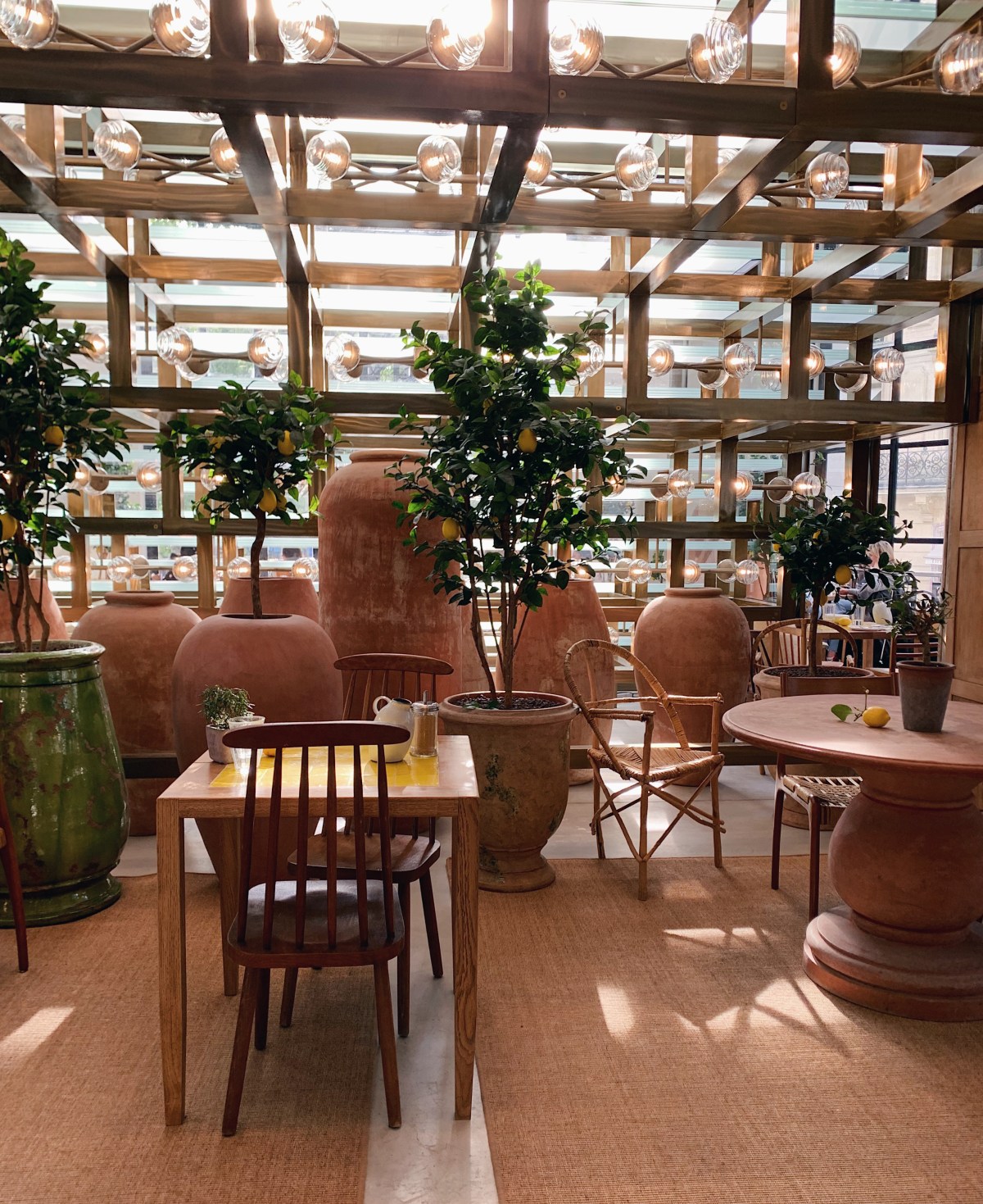 The space is filled with lemon trees, terracotta pots and cottage-style wooden furniture. On the menu is marinated Mediterranean veggies and sardines, pistachio flans, rosemary lemon tarts and the most perfect cake designed for this place only: a citron cake (literally).