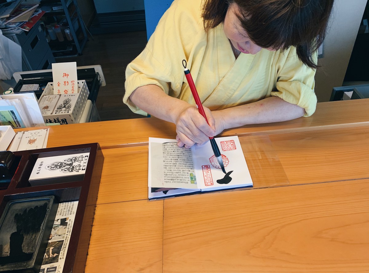 At all the temples throughout Japan you can pay 300 yen (2,5 euros) and get a temple stamp, date and a small prayer if you bring (or buy) a proper temple book. We collected stamps all the way on our trip. Such a beautiful and special souvenir to have.