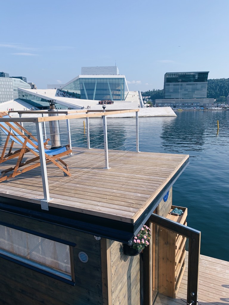 KOK floating sauna in front of the Operahouse on a sunny day is a must-do when in Oslo.