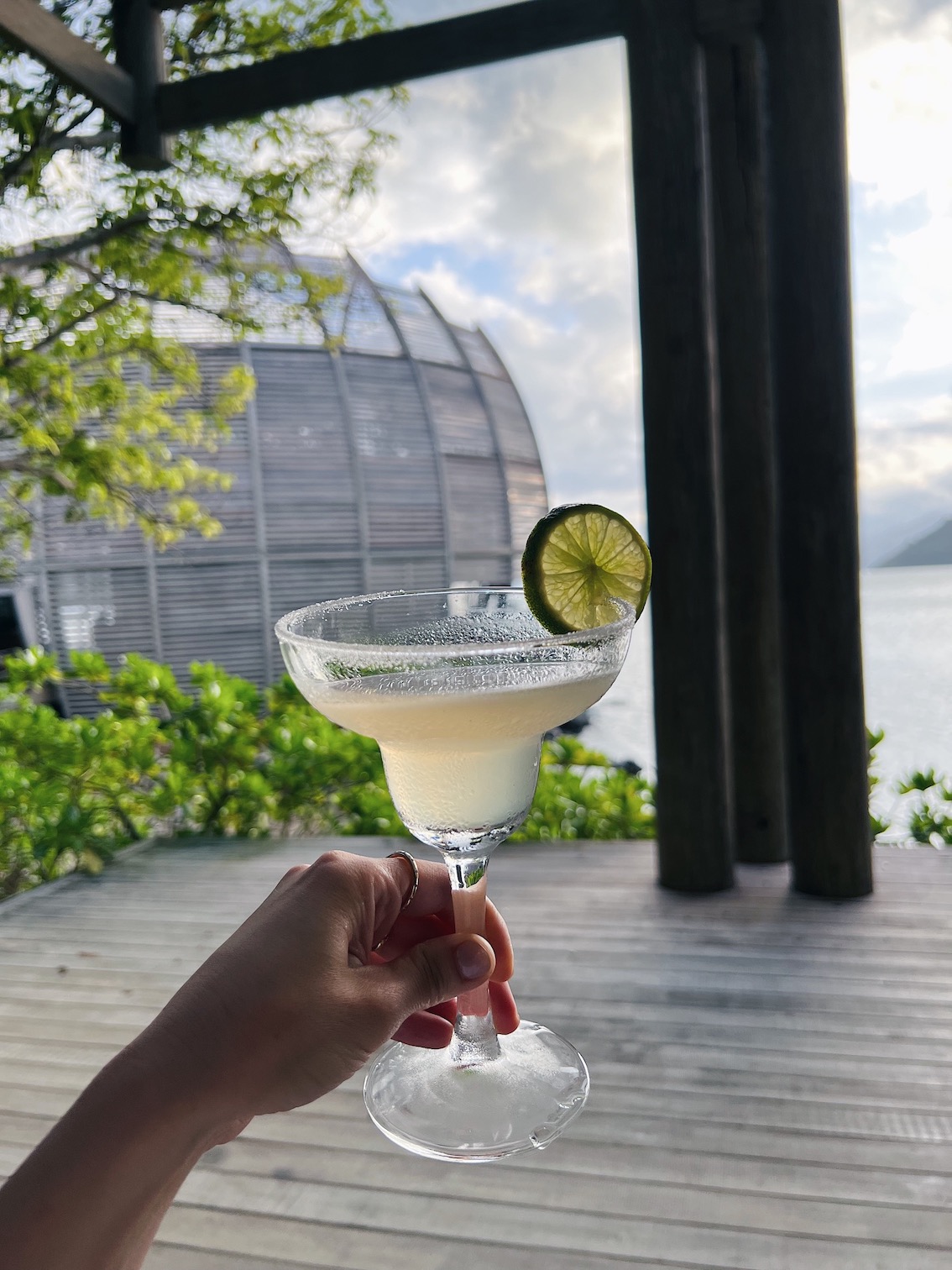 There is a public pool from where kayaking is available, and just in front of the pool is a small plateau out in the water, that you can easily swim out to, which we did with the girls. We also spend some afternoons in the board game area playing chess and having margharitas. Behind the villas are the areas for the gardens, the yoga pavillon, the spa and the gymnastik, not to mention the local spring of fresh water, that is the source of all drinking water at the resort. The small fresh water spring “trail” makes for a really nice hike, and you can also have a barbecue further up