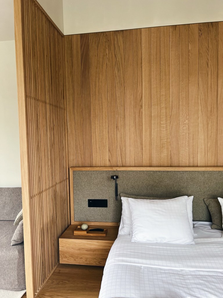 It is a truly unique place in the middle of a forest reserve close to the Falkenberg town. Last year the hotel had an upgrade when Astad Wineyard commissioned Norm Architects to do 14 beautiful “floating” spacious suites with private saunas. Every detail is a perfect blend of Japandi and Scandi esthetic. As an extra feature all the suites has access to the filtered water pond from the private terraces on the water. It is indeed a very nice touch.